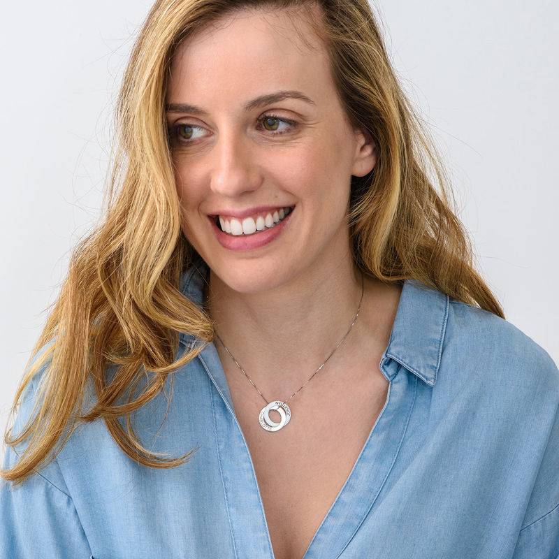 Personalised white gold jewellery makes a sleek, sophisticated addition to any collection. Our Russian Ring Necklace with 2 Rings in 10ct White Gold is sure to be a favourite, thanks to its simple, chic styling. Ideal for celebrating a relationship with your significant other, displaying two children’s names or a pair of meaningful words, or anything else you can think of, it makes a wonderful yet easygoing statement. This beautiful necklace is made with 10ct white gold, with the interlocking Russian ring circles arranged on a 10ct white gold box chain to match. Like many styles found in our engraved necklace collection, it is also available in your choice of sterling silver, 18ct gold plating, 18ct rose gold plating or 10ct gold.